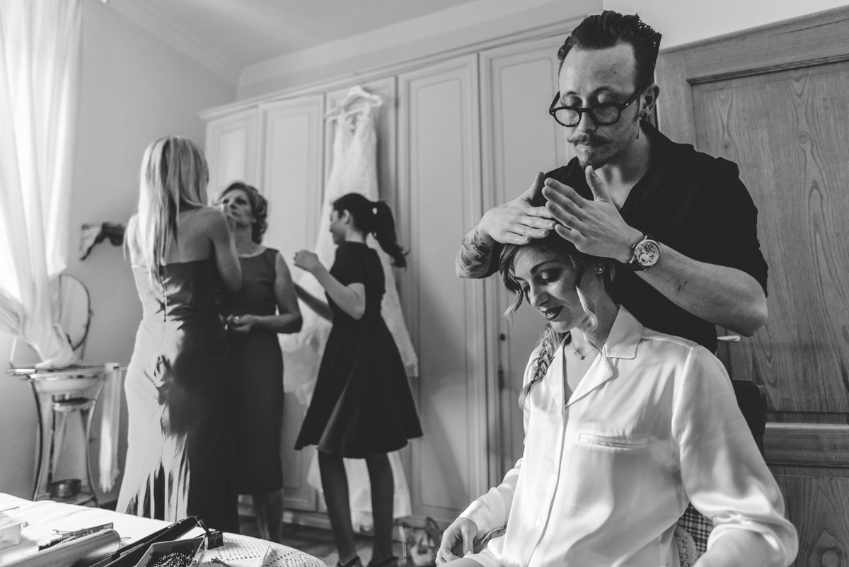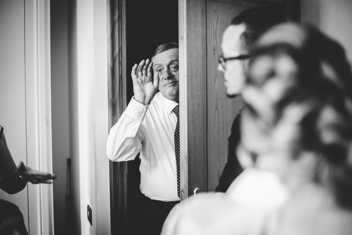 We met for a session of couple portraits in Spring and it ended up being useful, especially for the camera-shy bride. I was able to help her overcome shyness! The day of the wedding was magnificent! I left from Florence with Daniela (the second photographer) and we started with pictures of the groom’s preparations. After immortalizing his excitement, we went to the bride. She was quite relaxed: thanks to the engagement in Fiesole we already knew each other and the camera was no longer scary.