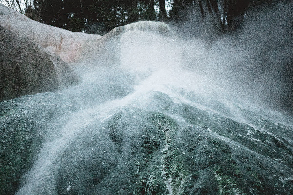 The natural spa of Bagni di San Filippo in Toscana, with its colors, calcareous formations, the hot water vapor, and the sound of water flow, is a magical and suggestive place.